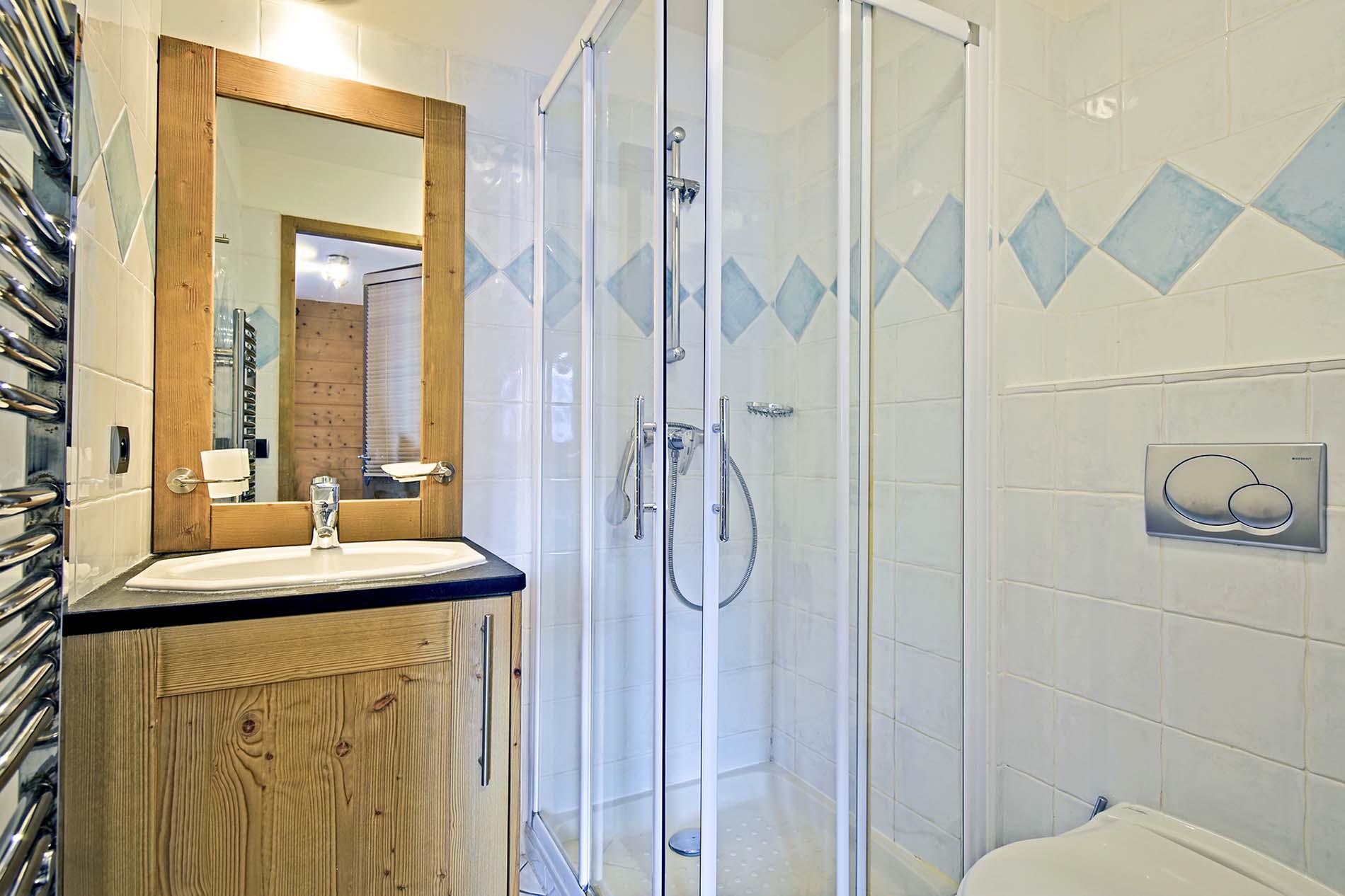 - Bedroom 1: Double bed and ensuite bathroom with shower, wash basin and WC.