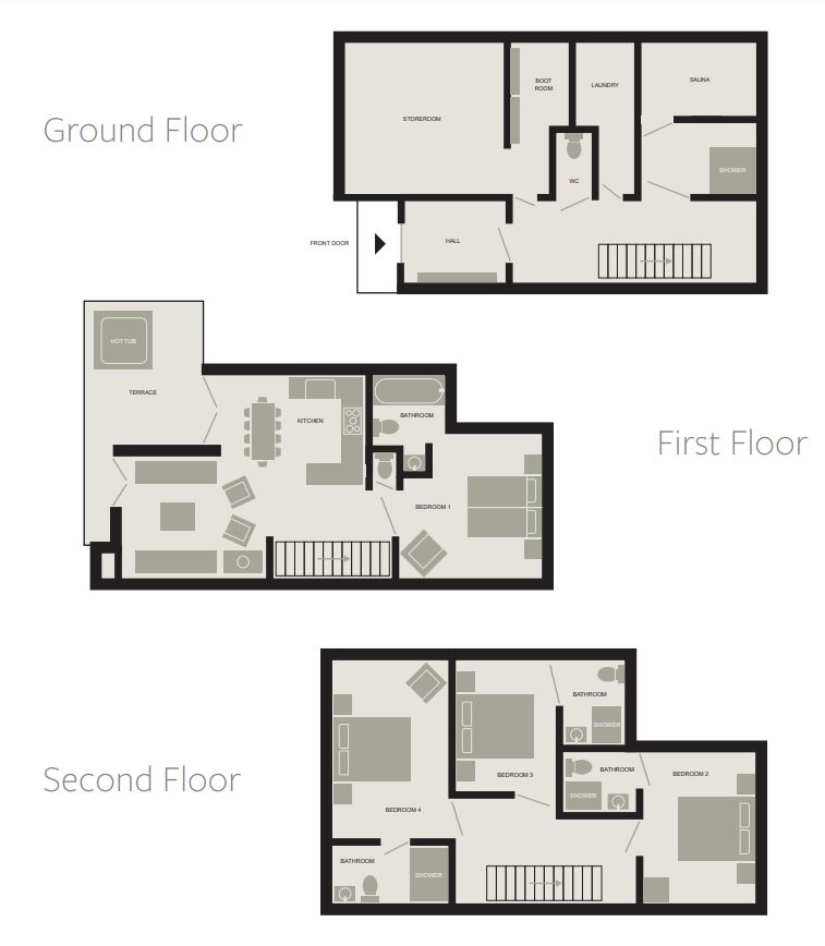 - Ground floor: Ski room with boot warmers