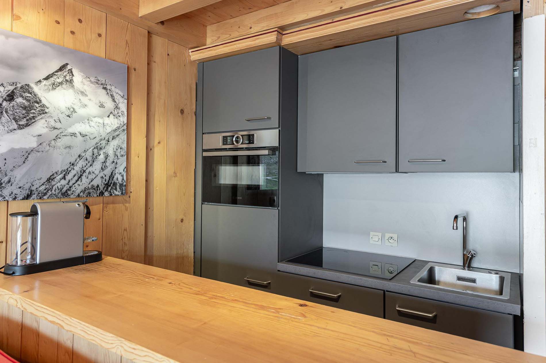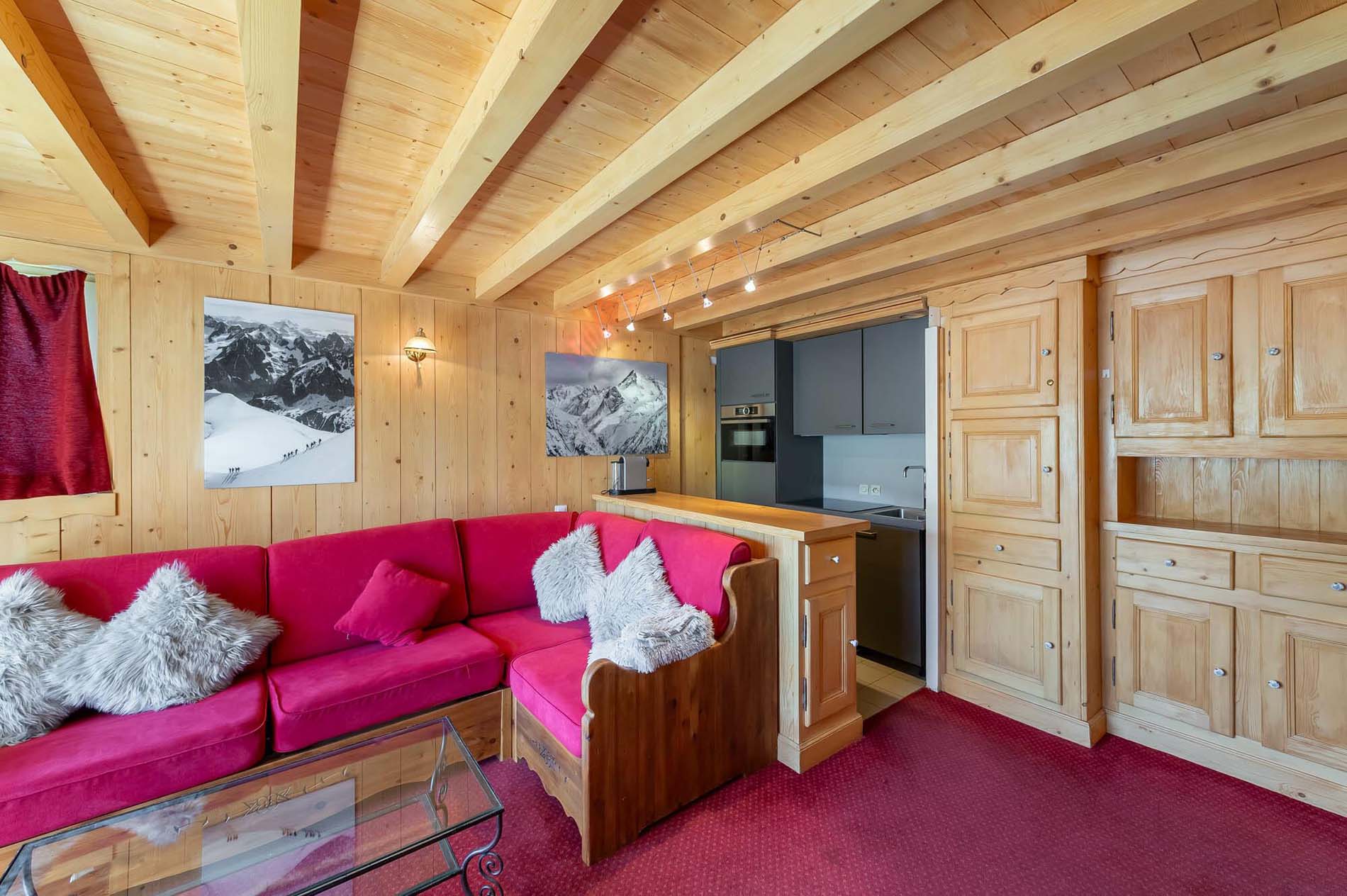The codes of mountain decoration - fireplace, wooden walls, carved furniture - give a typical and warm atmosphere to the apartment Beau Soleil II. It can accommodate up to 6 people.