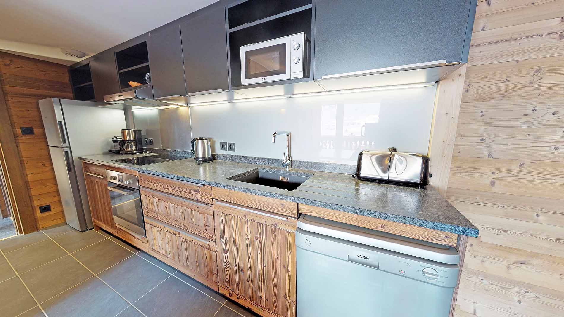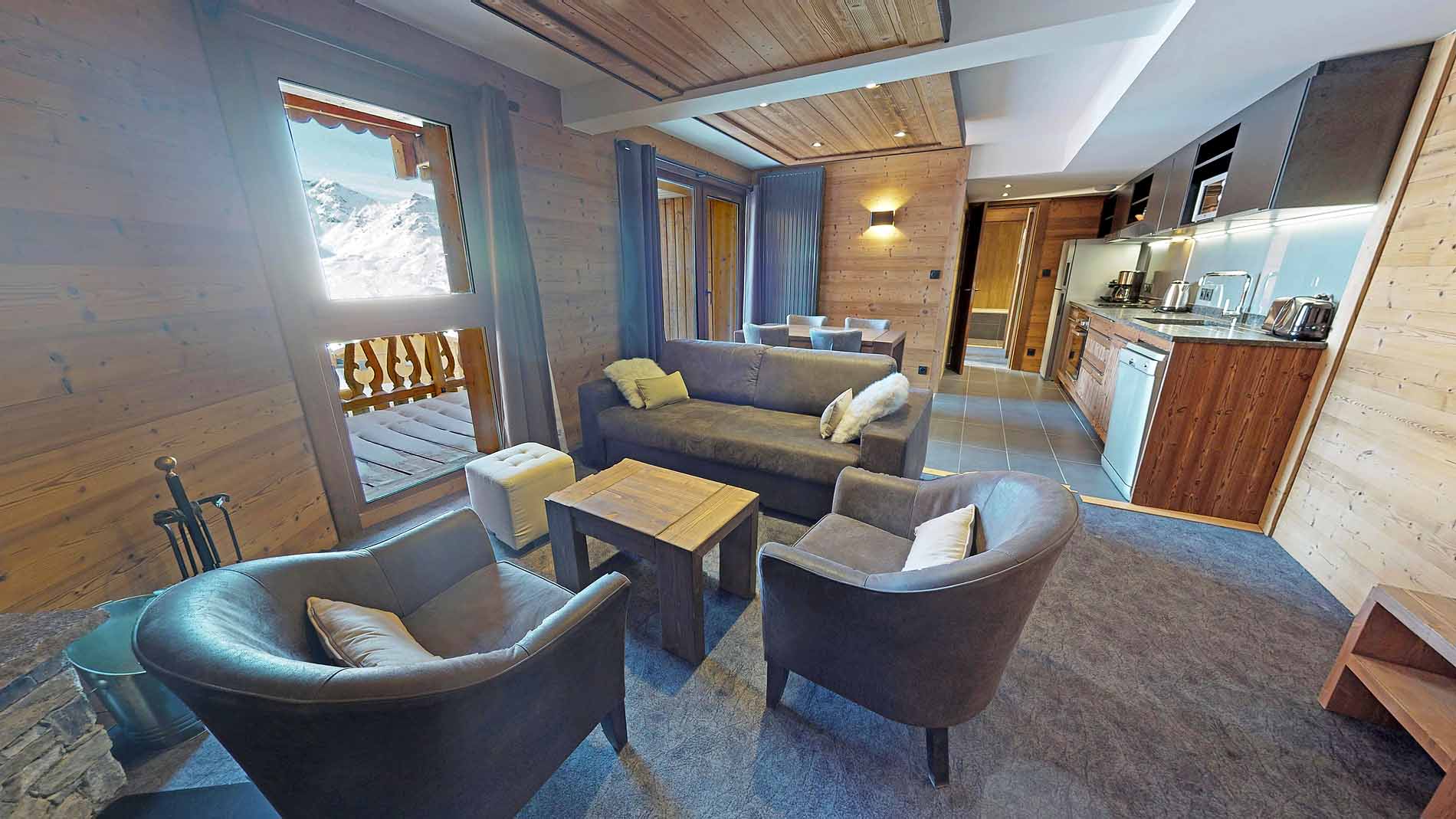 Located in the quiet “Les Balcons” area of Val Thorens, Apartment Caron is part of a very high quality and perfectly located residence. Accessing the slopes from this apartment is effortless as the piste (blue) is just 150 metres away.