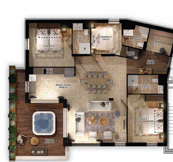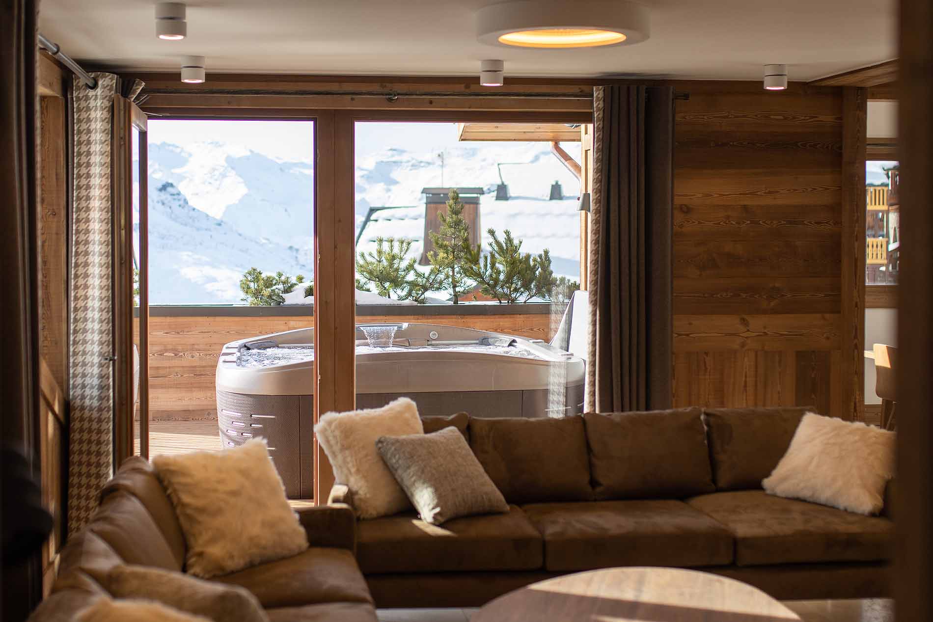 - Open plan kitchen living and dining area with terrace with jacuzzi