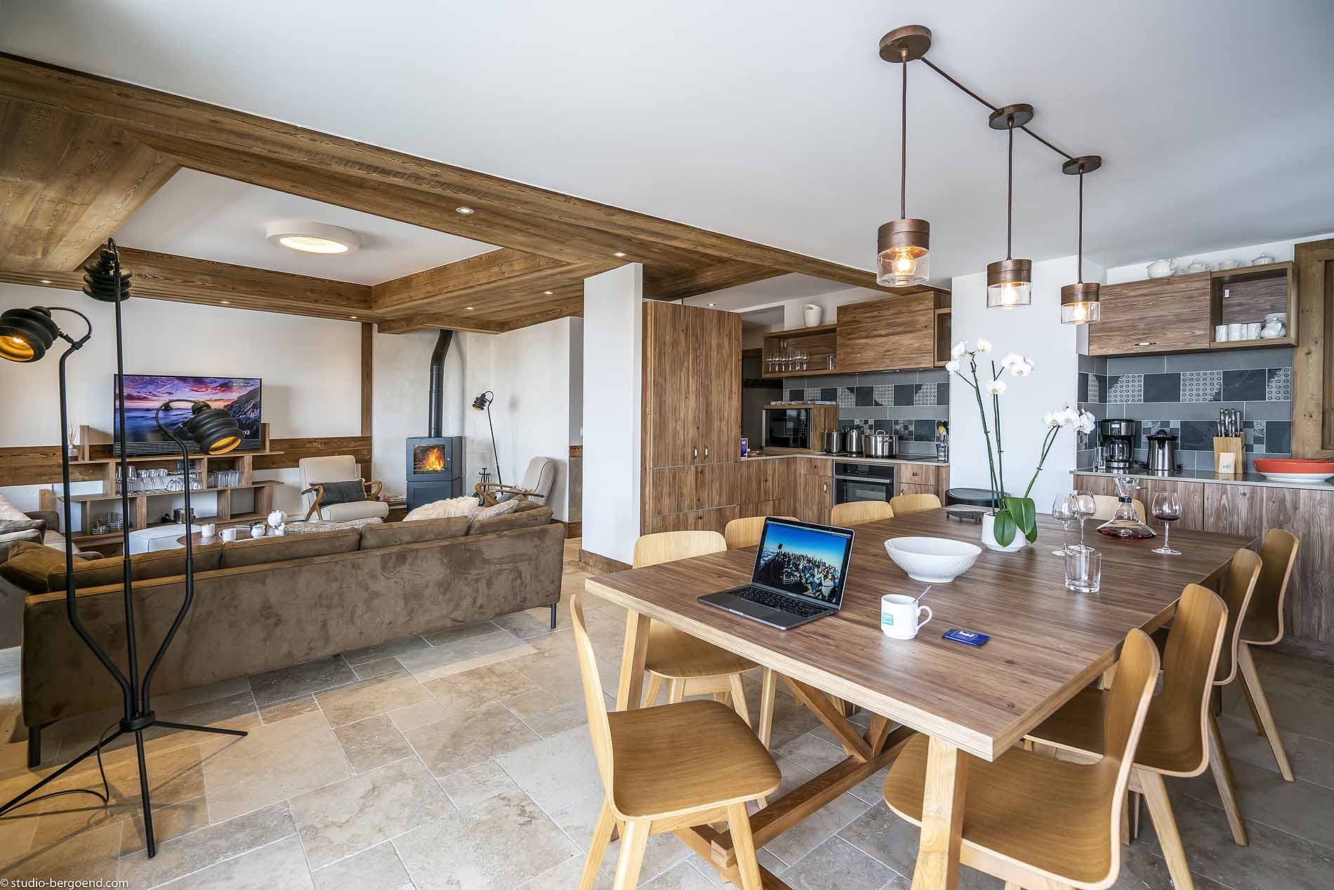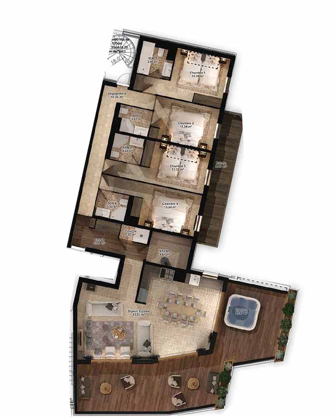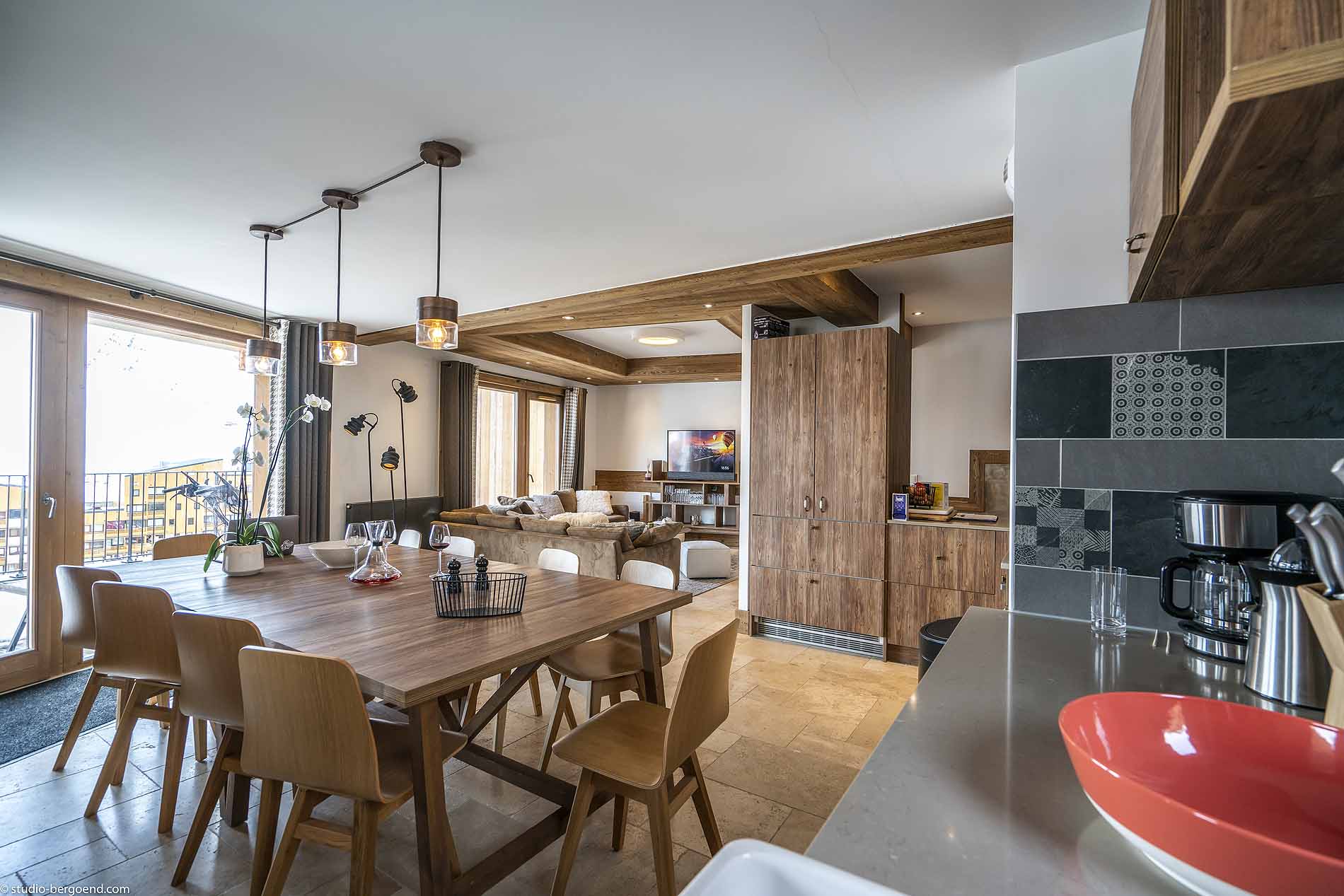 - Open plan kitchen living and dining area with terrace with jacuzzi