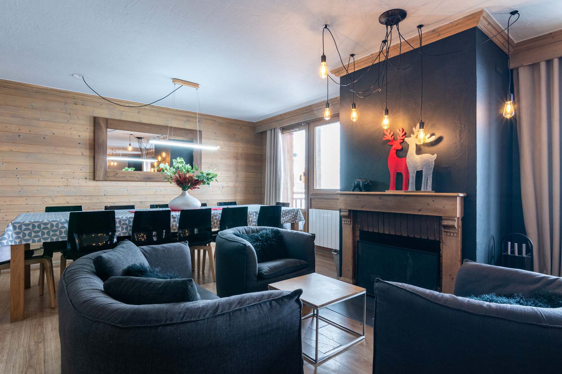Chalet Mouflon, set in the quieter upper Balcons area of Val Thorens, is just a 10-minute walk from the lively resort centre. This 6-room duplex of 160 m², located on the 3rd floor, accommodates up to 12 people and features a south-facing terrace.
