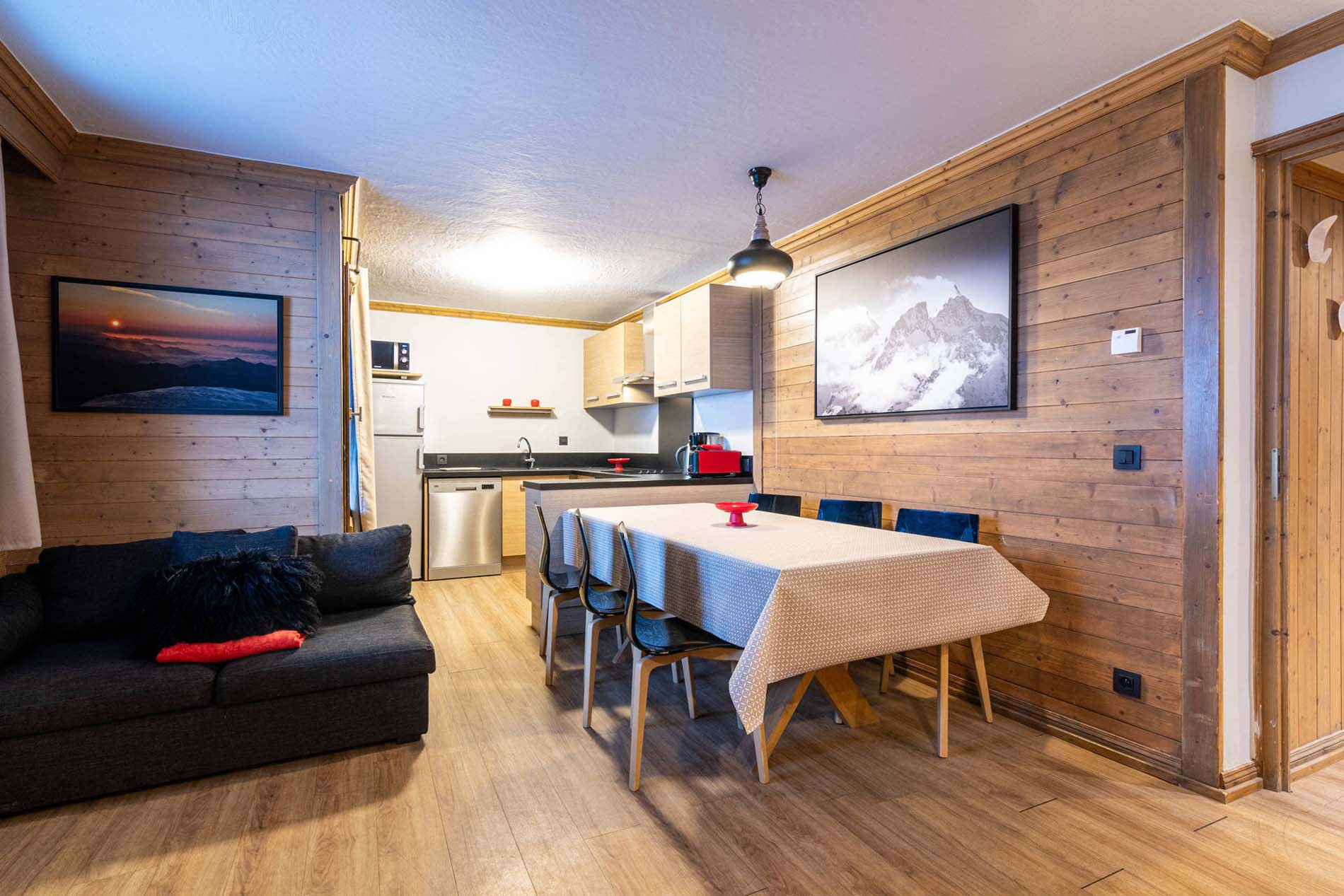 Chalet Mouflon, set in the quieter upper Balcons area of Val Thorens, is just a 10-minute walk from the lively resort centre. This 4-room apartment of 66 m², located on the 1st floor, accommodates up to 6 people and features a south-facing balcony.