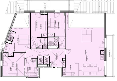 - Openplan living, kitchen and dining area with fireplace and balcony access